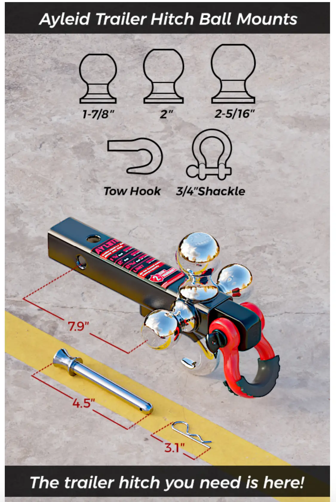 Ayleid Tri-Ball Mount w/ Hook & Pin & Rotatable Tow Shackle